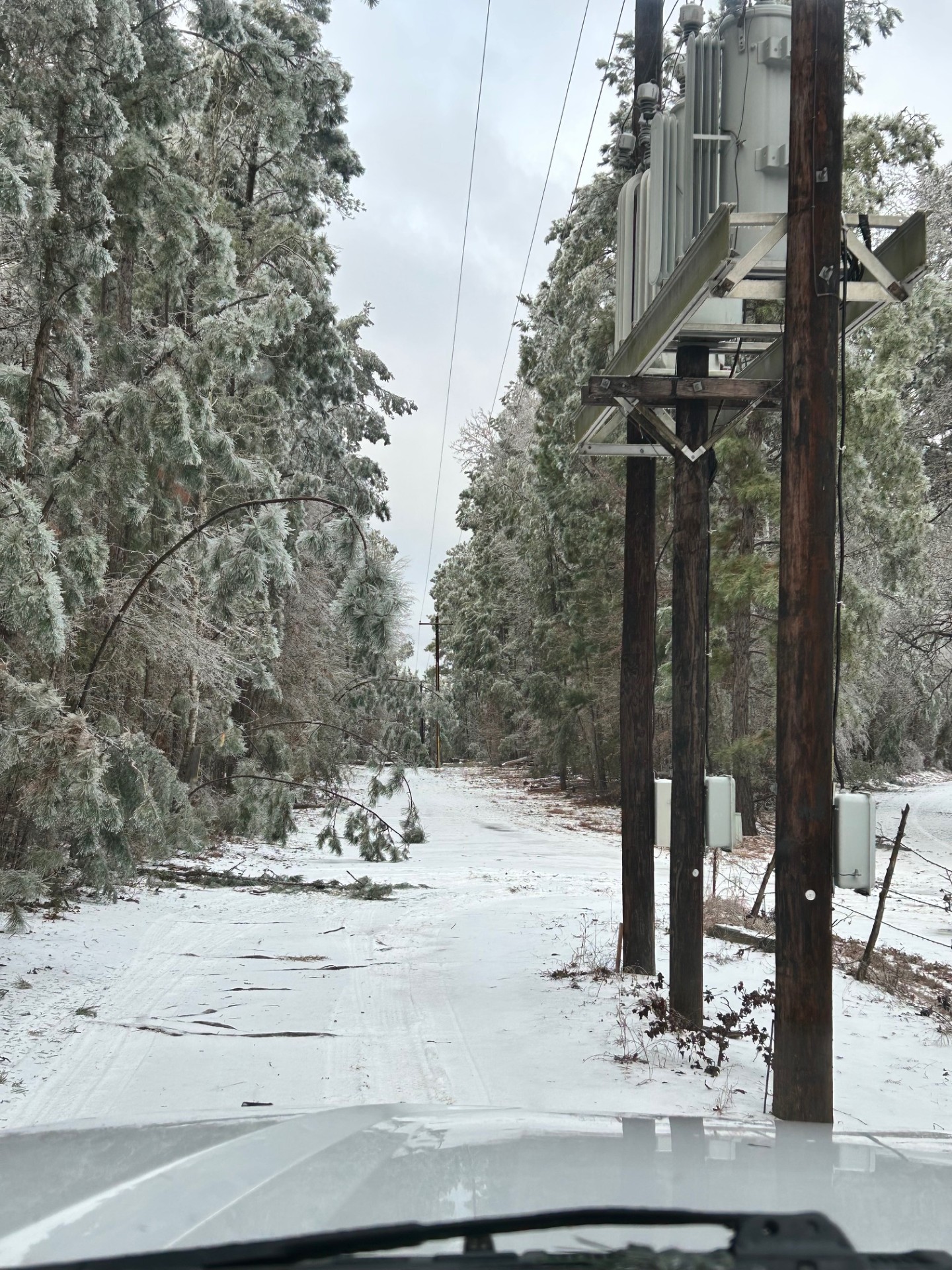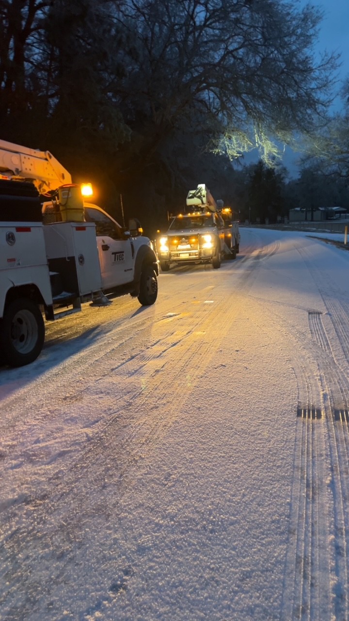 10 a.m. 1/25/26 – The TVEC service area seems to have been spared the heavy ice buildup that is causing major power disruptions from east Texas to Tennessee and beyond this morning. We have seen some scattered power outages, mostly from leaning and fallen trees.