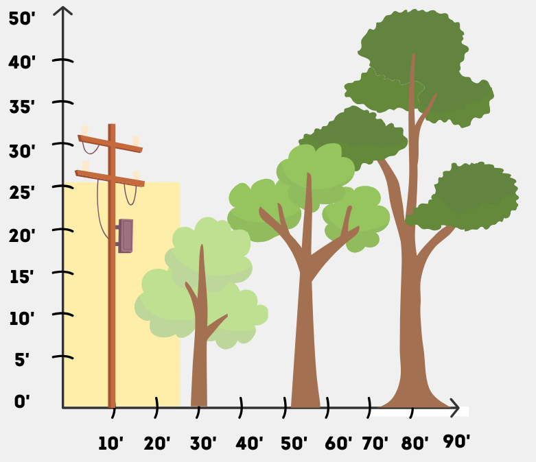 Trees grow taller and wider over time. Planning for their mature size today prevents future trimming concerns and helps protect reliable electric service.
